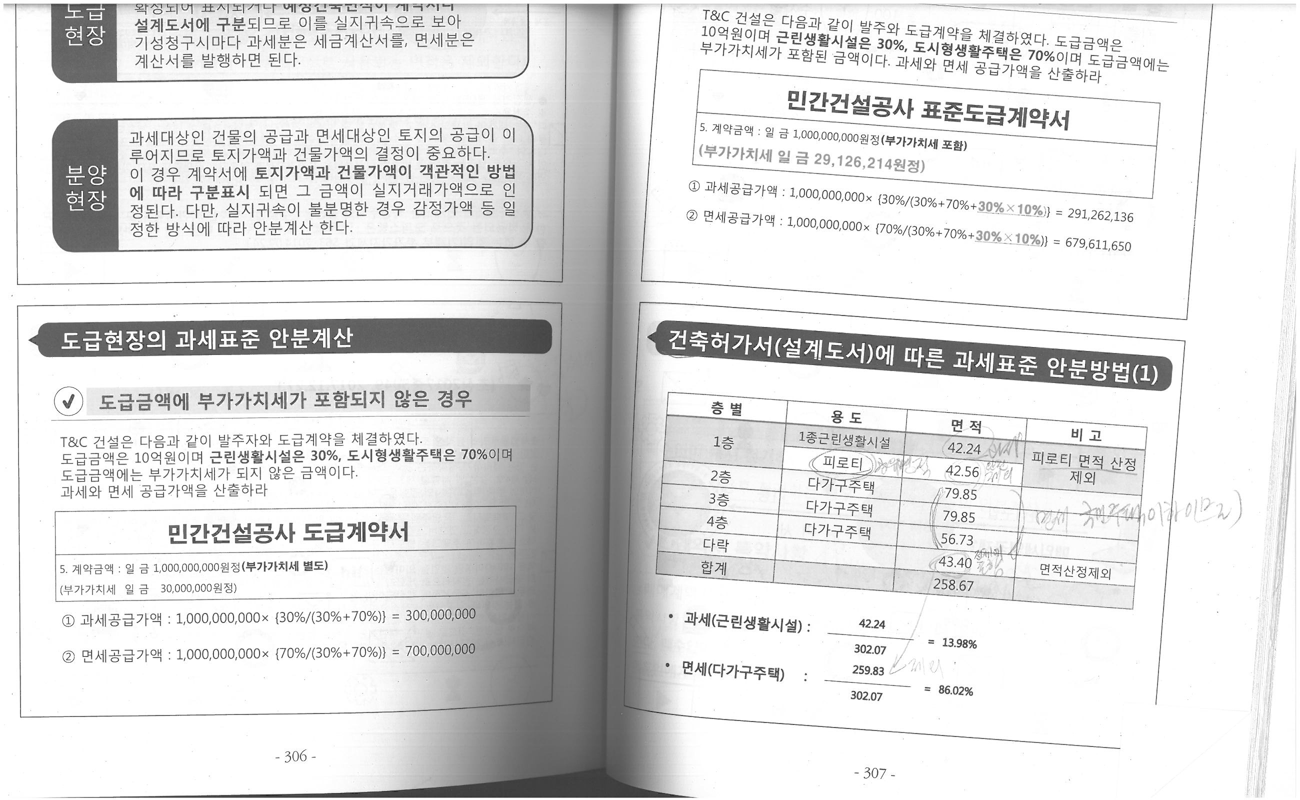 건축허가서(설계도서)에 따른 과세표준 안분방버(1) 대해서문의드립니다